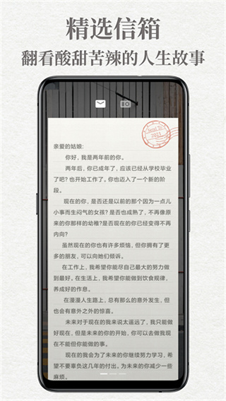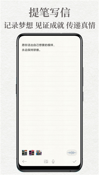 1、个性化书信创作表达,支持自由书写对未来的期许、当下的思考与成长的感悟,彻底解决心绪无处安放、感悟难以留存的核心痛点,让每一份思考与期许都有专属的承载方式。