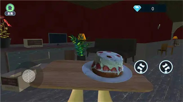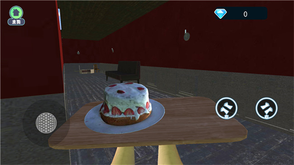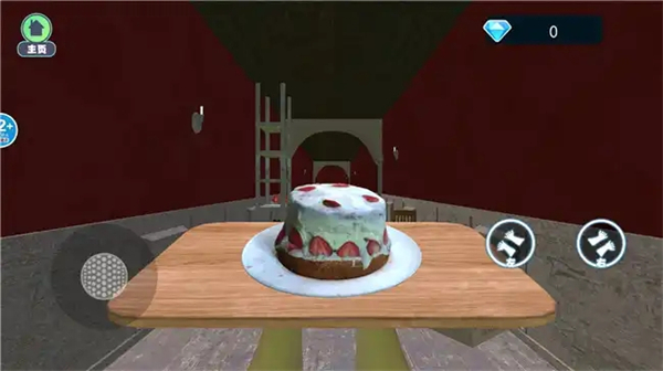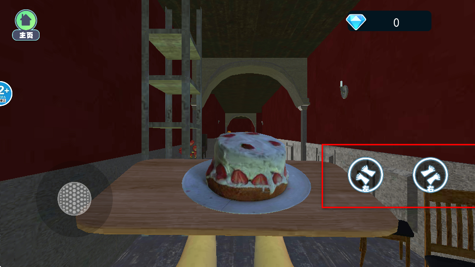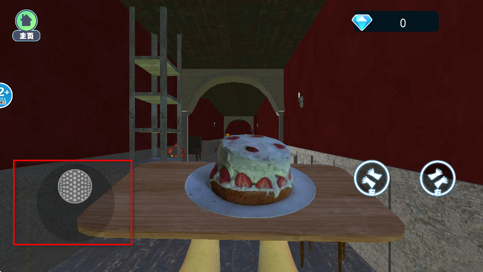 2、进入关卡后,通过左侧的摇杆控制角色移动,托举蛋糕在场景中行进。
