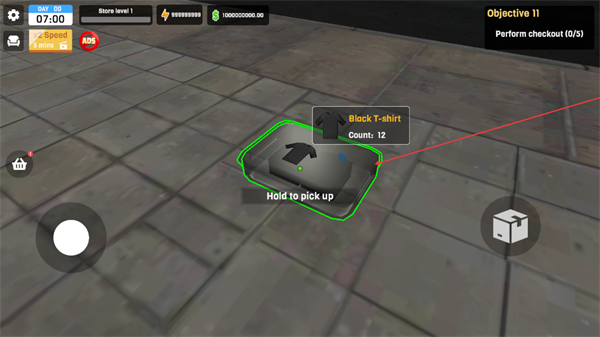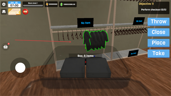 2、长按拾取Black-T-shirt物品箱,获取待整理的服装。