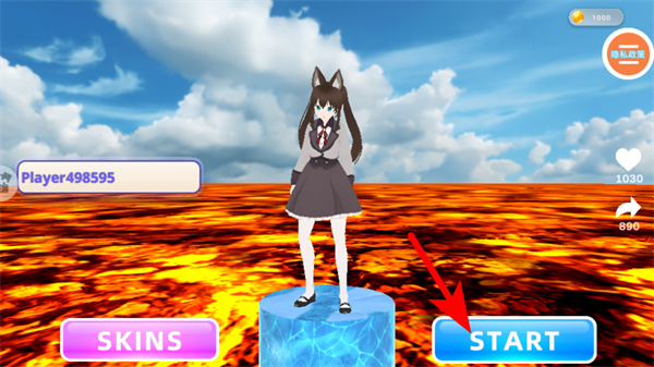 1、进入游戏界面后,点击红色箭头指向的START按钮,进入游戏的核心玩法场景,这是开启游戏的关键操作。