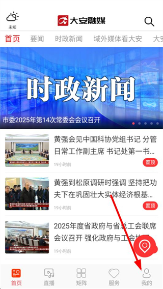 1、进入大安融媒后,点击底部的我的选项,可进入个人中心页面。