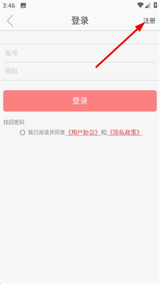 3、在登录页面,点击注册选项,可进入账号注册页面。