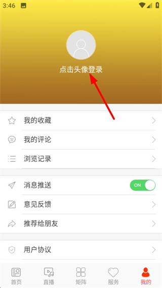 2、在个人中心页面,点击点击头像登录区域,可进入登录页面。