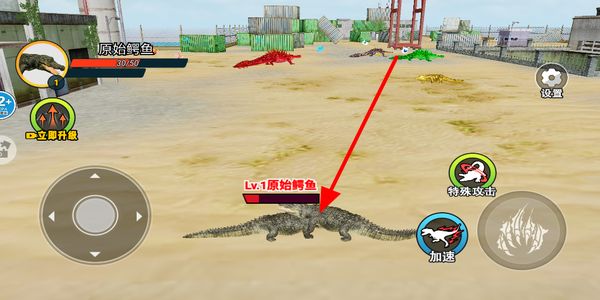 4、猎杀其他鳄鱼后进行吞噬,积累成长经验资源,当经验足够时会提升等级并进化,增强鳄鱼的属性和战斗能力。
