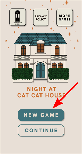 1、在游戏主界面点击NEW GAME按钮,开启深夜逃脱猫咪屋的冒险关卡。