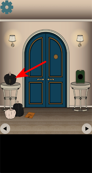 2、进入游戏场景后,找到左侧圆桌上的黑色南瓜,准备与该物品进行互动。