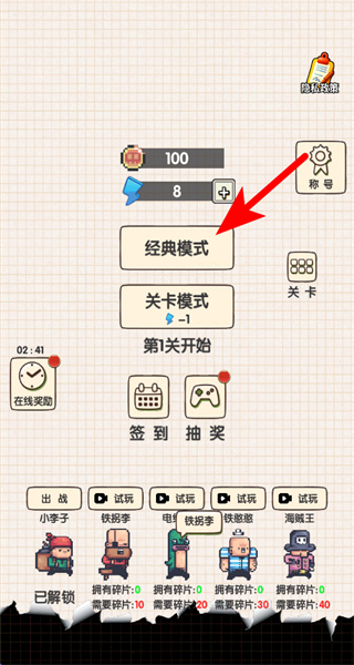 1、在游戏的主界面,可选择点击经典模式选项,进入对应的冒险玩法关卡。