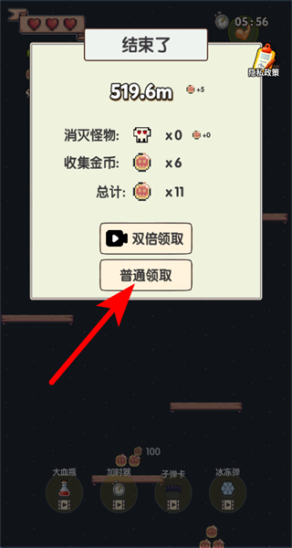 4、关卡结束后,我们可以选择普通领取的按钮,获取本次冒险对应的奖励。