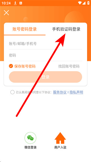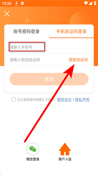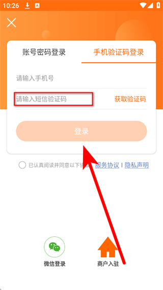 4、将收到的短信验证码填入短信验证码栏,勾选相关协议后,点击登录完成账号登录。