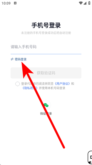 1、在快题库登录页面,点击密码登录,进入密码登录界面。