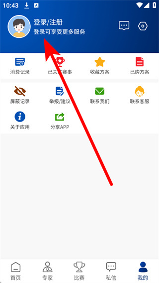 2、在个人中心页面点击登录注册区域,进入登录操作界面。