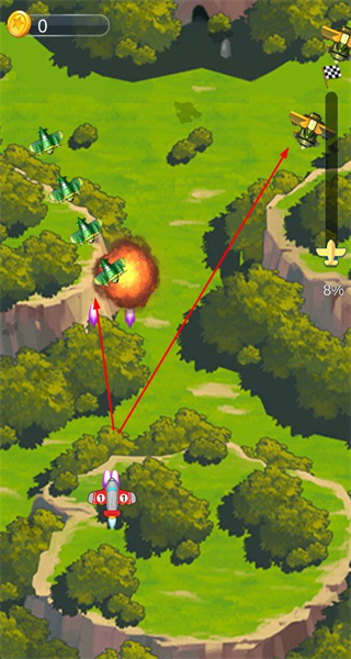 2、战机出击后,击败敌方单位获取金币,积累资源,推进关卡的进度。
