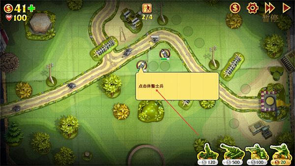 1、根据提示点击部署像素像素士兵,新增地面防御单位。