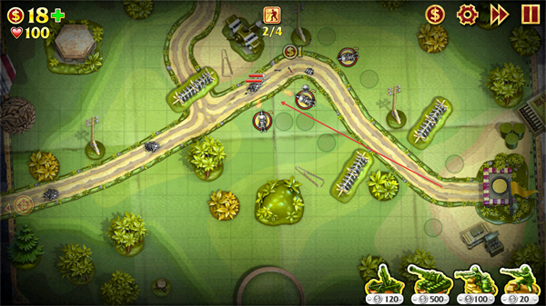 包含四种特色兵种,各有独特属性与作战优势,需根据敌人类型坦克、运输车辆、飞机与行进路线,在战略点合理布置,构建攻防兼备的防线。