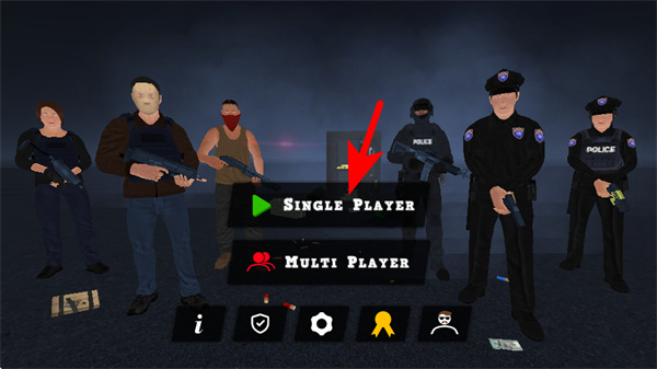 1、进入游戏界面后,点击红色箭头指向的SINGLE PLAYER按钮,选择单人模式进入游戏,这是关键操作。