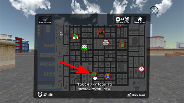 3、在完整地图界面,紧跟红色箭头指引,点击任意图标,查看该图标的详细信息,明确行动目标。