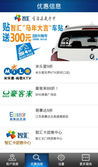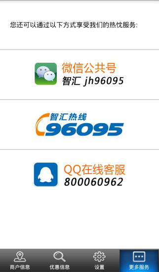 智汇市民卡商户端是一款适用于商家用户的应用,提供智汇网各营业网点的地图位置显示,包括营业厅、合作网点、充值点。可查询智汇合作商户信息,优惠活动。