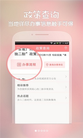 1、启动APP后系统智能定位,根据您的户籍所在地,第一时间推送当地最新二胎政策和办事流程。