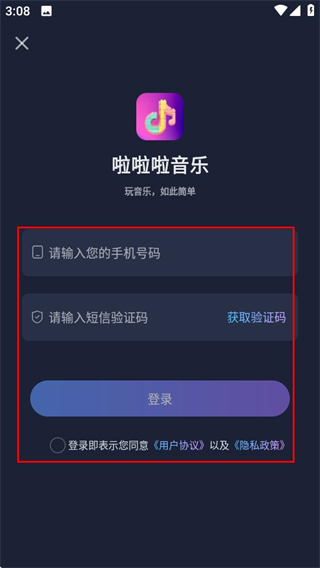 3、在登录页面,填写信息并勾选协议后,点击登录按钮即可完成账号登录。