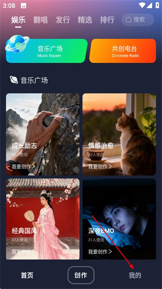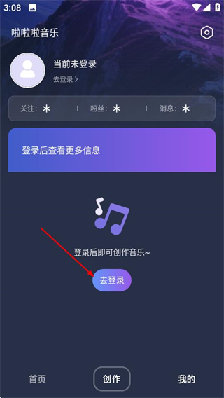 1、进入啦啦啦音乐后,点击底部的我的选项,可进入个人中心页面。