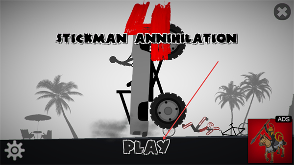 1、进入弄死火柴人4的启动界面后,点击界面中的PLAY按钮,即可进入关卡选择环节,开启该火柴人主题游戏的挑战。