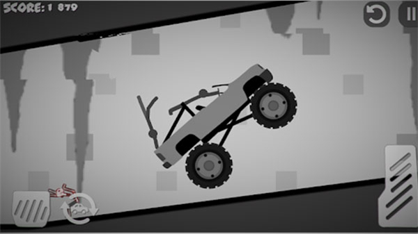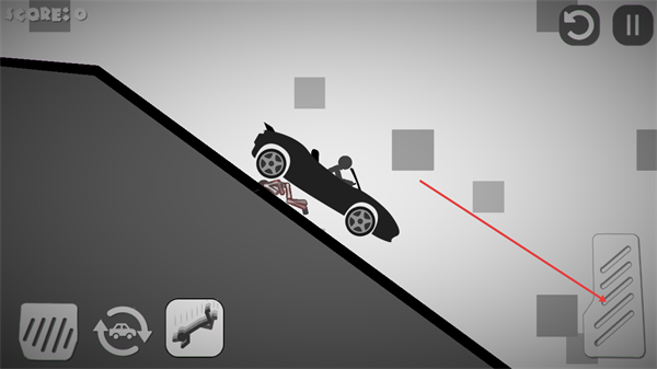3、在关卡游玩界面中,通过右侧油门按钮控制载具加速,左侧按钮可重置载具或触发动作,操控载具与场景互动来推进关卡。