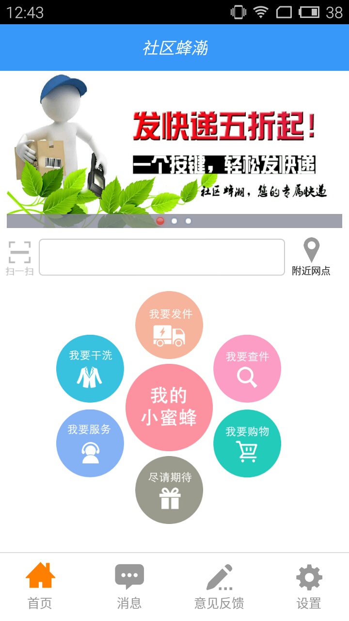 社区蜂潮为您提供最专业的社区服务,包含快递收发、衣服干洗、家政服务、房屋租赁、网上购物等,您只需要轻触指尖,社区蜂潮服务人员就会出现在你家门口,为您提供最优质的服务。
