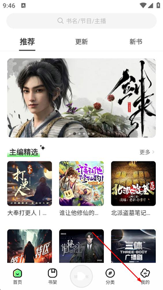 1、在轻云听书首页,点击底部的我的选项,进入个人页面。
