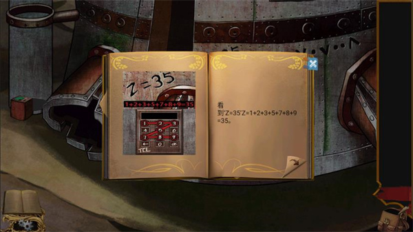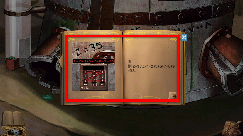2、点击左下角的书本道具,打开后查看Z=35的数字组合提示。