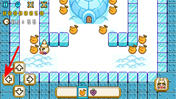 2、关卡内操作左侧的方向按钮如左箭头,控制冰淇淋角色移动,靠近场景中的食材,为收集做准备。
