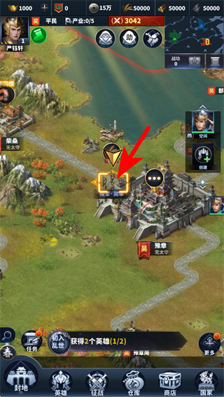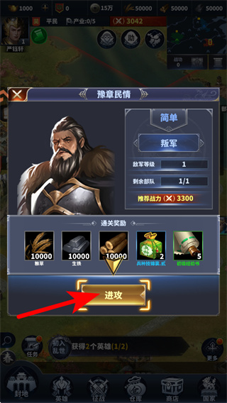 2、返回主场景后,点击标识为叛军的目标区域,进入该任务的战斗准备界面。