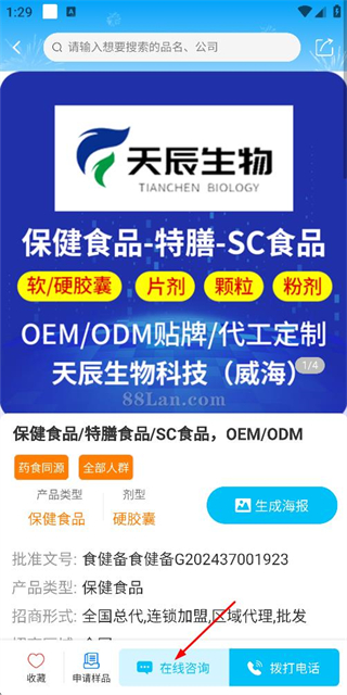 88蓝健康产业网是一款深耕医疗健康产业的招商推广平台,始于2008年,累计服务超100万行业从业者,平台支持医疗保健品信息发布与查询,提供招商对接、在线代理申请、OEM代工报名等核心服务,以靠谱省心的服务体验,助力从业者简化招商流程,高效拓展业务渠道。