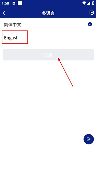 3、在多语言页面,选择目标语言后点击设置按钮,即可完成语言切换。