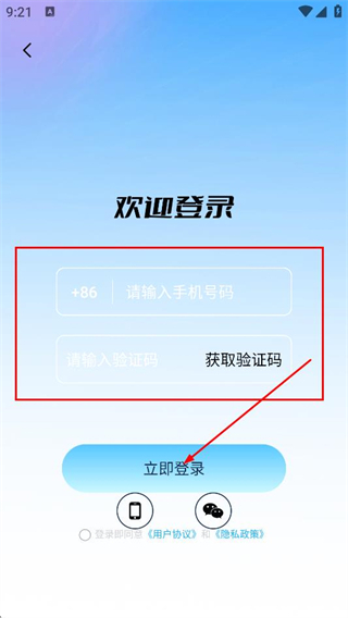 3、在登录页面,填写手机号码,获取验证码后填写验证码,点击登录完成登录。