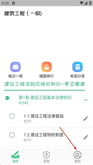 1、进入一级建造师建筑后,点击底部的我的选项,可进入个人中心页面。
