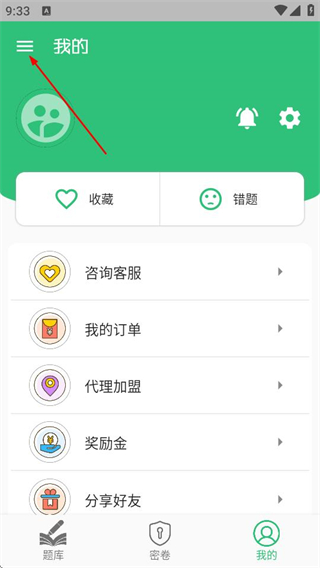 2、在个人中心页面,点击左上角的菜单按钮,可展开侧边菜单。