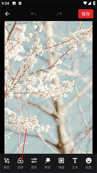5、滤镜应用完成后,点击保存按钮即可保存美化后的图片。