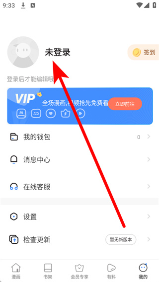 1、打开漫画码,点击底部导航栏的我的,进入个人中心页面。