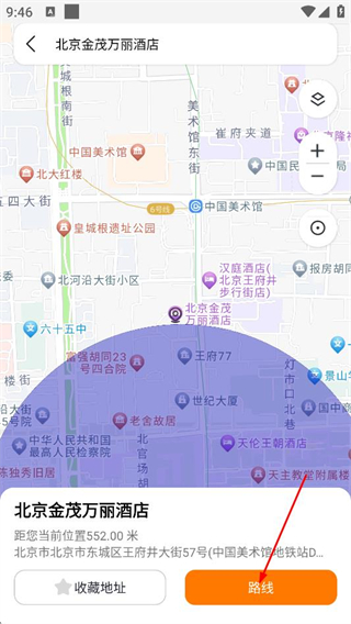 3、在搜索结果页面,点击路线按钮,进入路线规划页面。