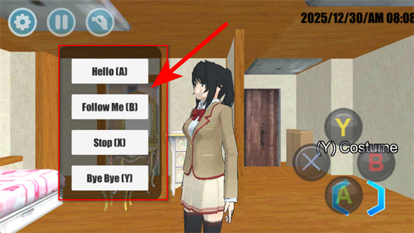 1、进入游戏界面后,点击Y按钮触发交互,这是开启角色指令功能的关键操作,点击后可调出指令选项。
