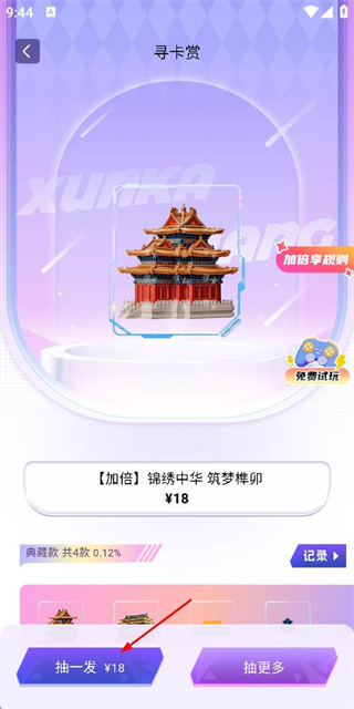 3、在寻卡赏页面点击抽一发按钮,进行该商品的抽卡操作。