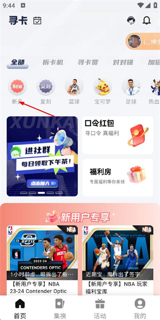 1、在寻卡首页点击新品分类选项,进入新品商品列表页面。