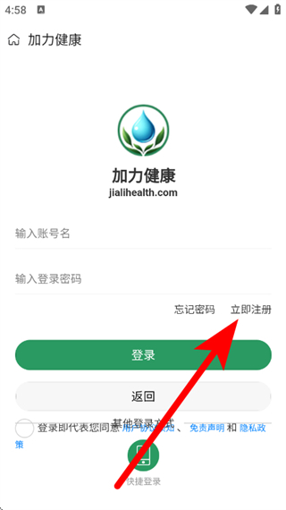 3、在账号密码登录页面,点击立即注册,进入注册页面。