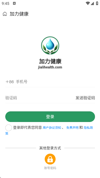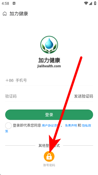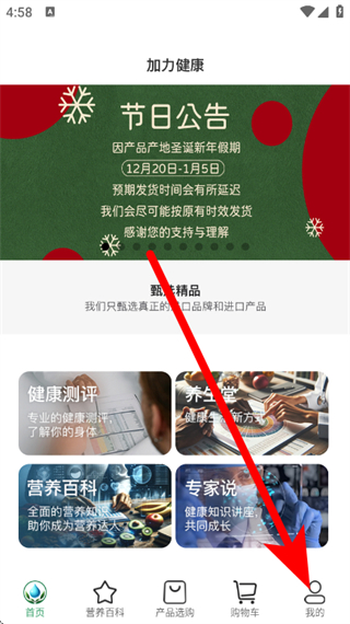 1、在加力健康页面,点击底部我的选项,进入登录页面。