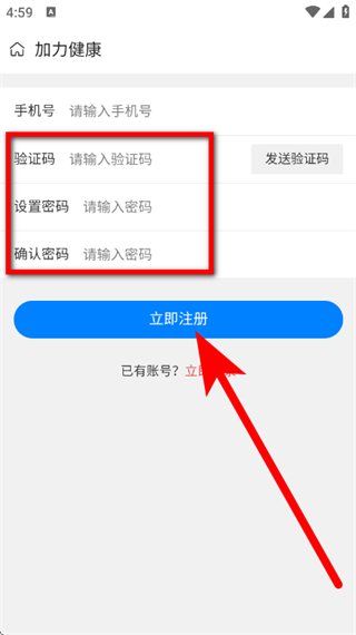 5、在输入框中,输入验证码,设置密码,点击立即注册,完成账号注册。