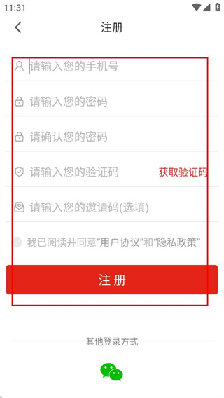 4、在注册页面,填写信息并勾选协议后,点击注册按钮即可完成账号注册。