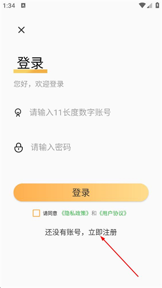3、在登录页面,点击还没有账号,立即注册选项,进入注册页面。