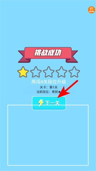 4、关卡挑战成功后,点击下一关按钮进入新关卡,这是推进游戏进程的必要操作,点击后跳跃挑战。