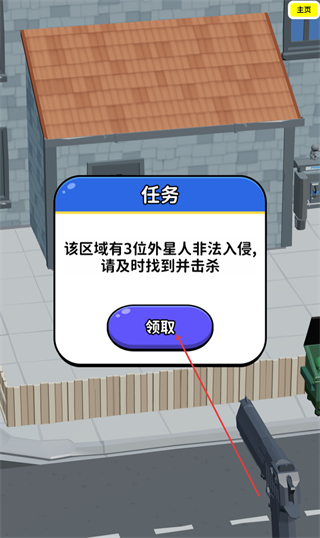 1、查看任务提示,该区域有3位外星人入侵,点击领取按钮,开启任务。