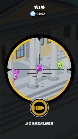 采用观察-瞄准-射击的简单操作逻辑,点击屏幕即可切换狙击视角,滑动调整准星,无需复杂的操作技巧,新手玩家也能快速上手开启挑战。